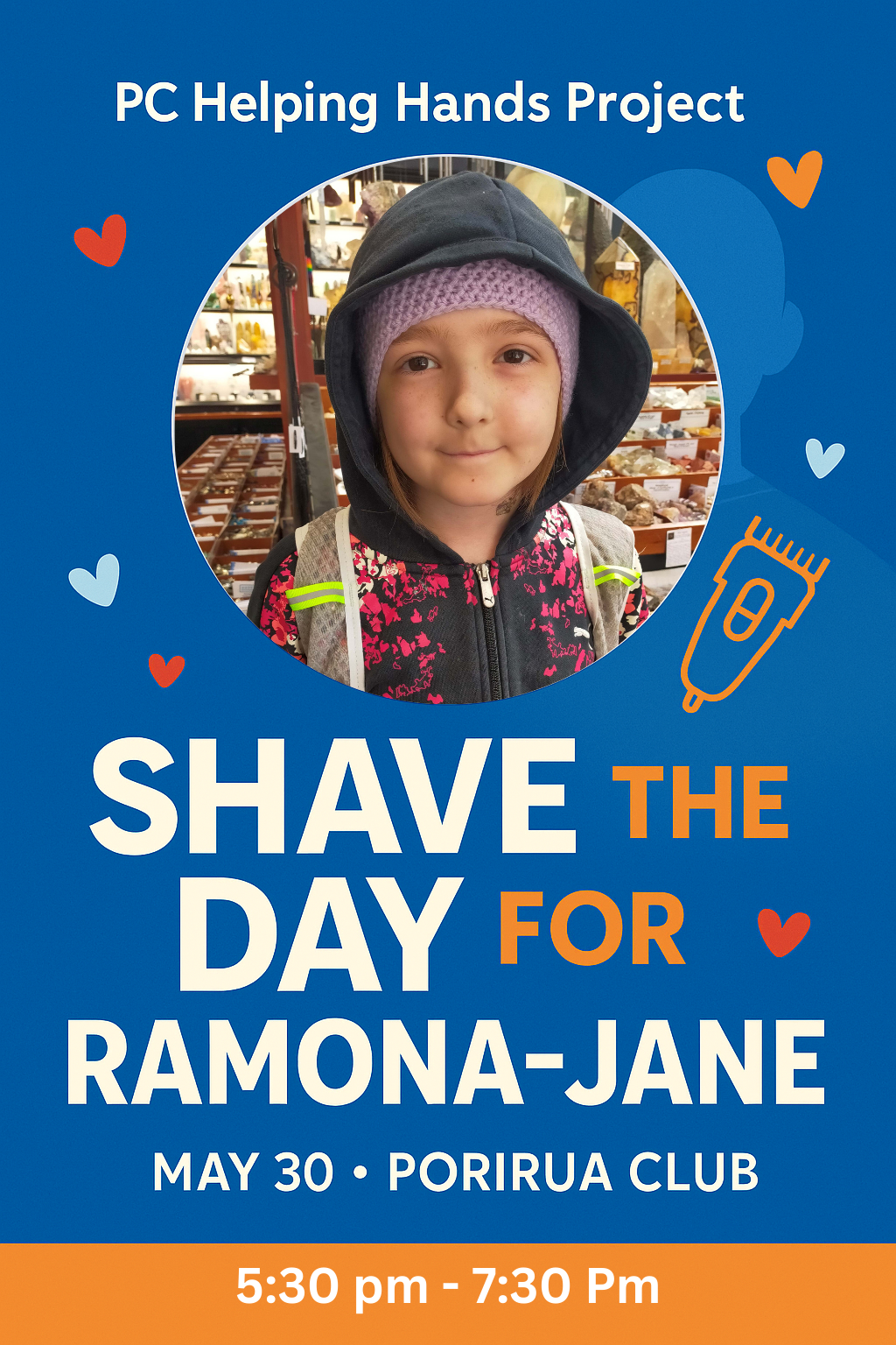 We’re coming together to raise funds for Ramona-Jane, a brave 10-year-old from Titahi Bay currently undergoing treatment for leukemia. Her father, Rob Kerr, is a long-time member of our Club whānau — and now it’s our turn to give back.
