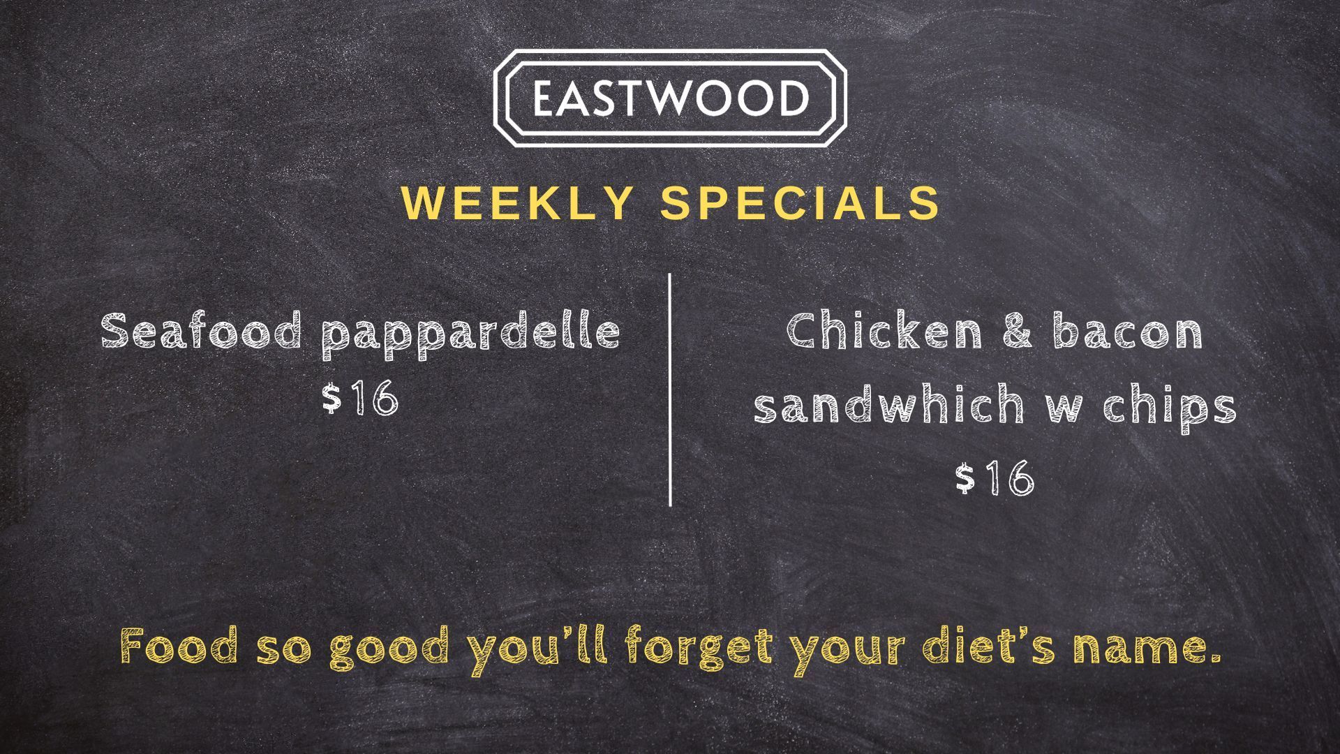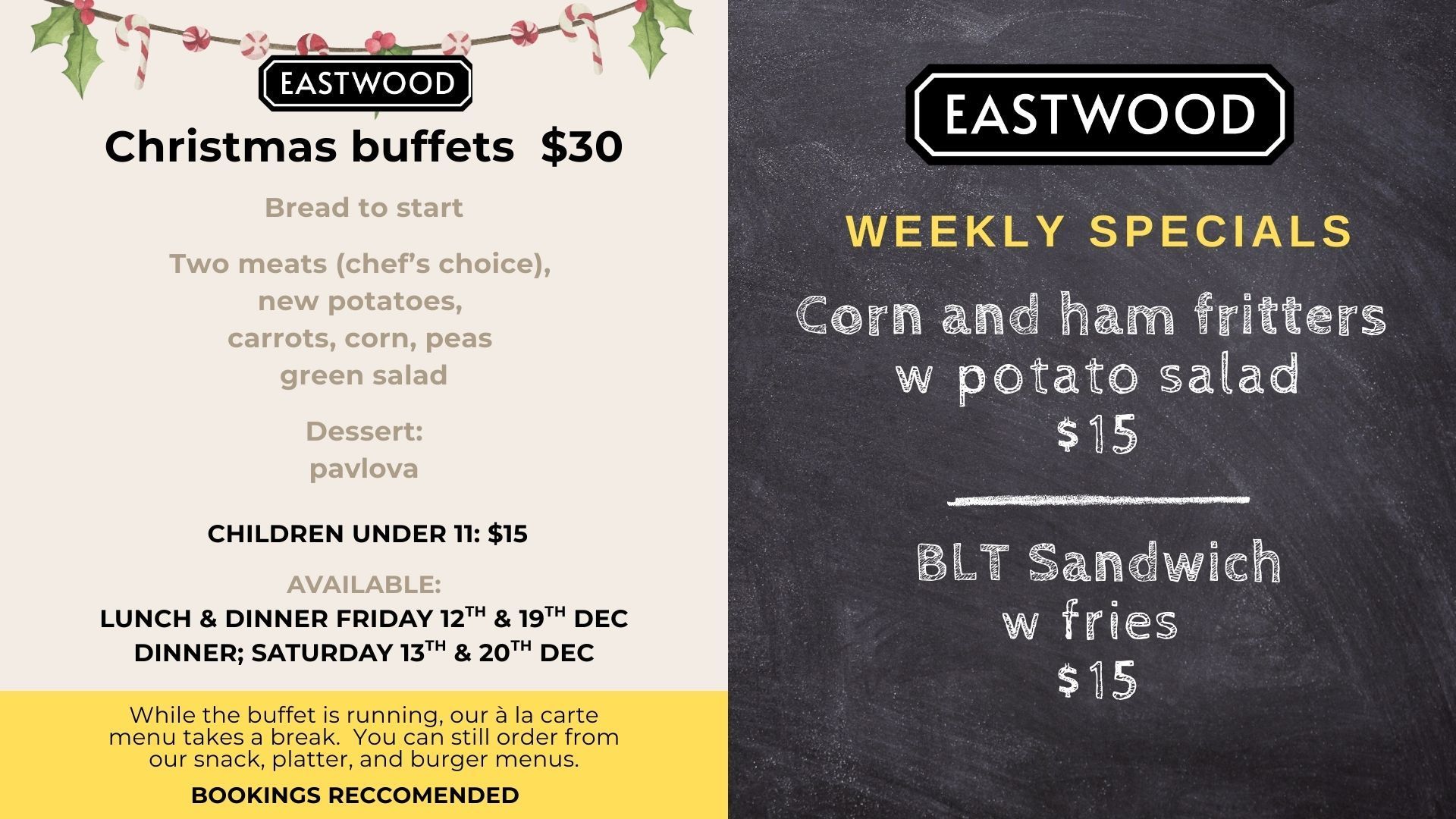 Click to download the kid's menu. Activity sheets and pencils provided when dining in at the Eastwood restaurant